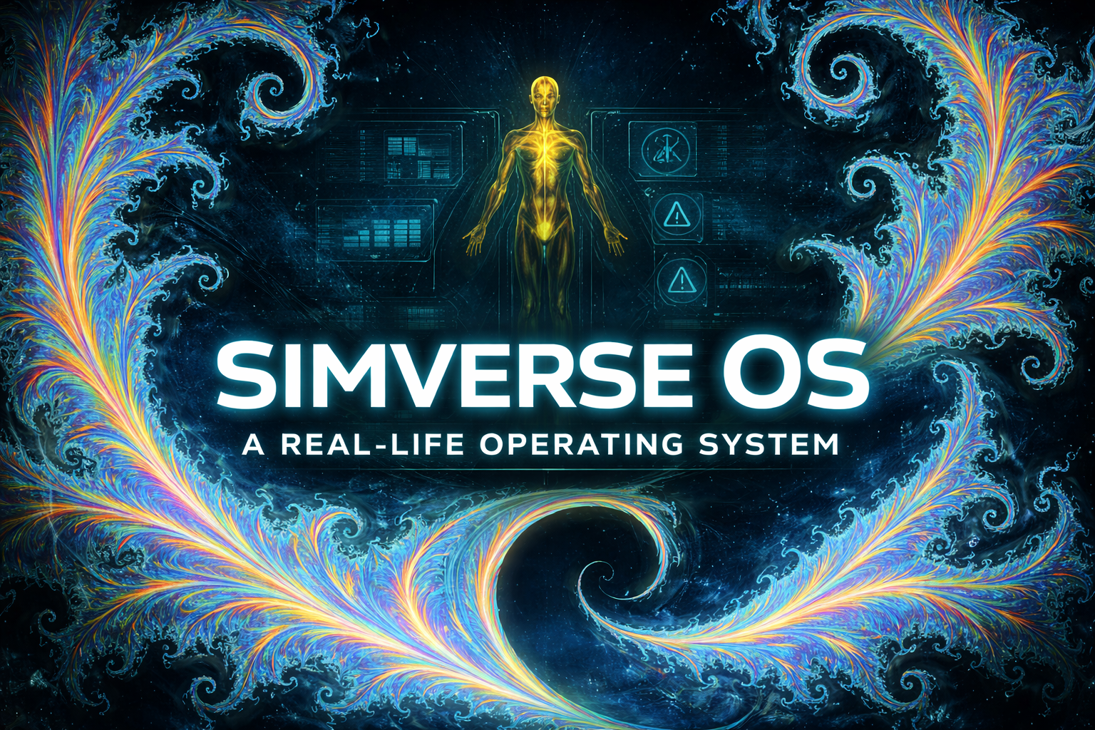 Simverse OS™ is a playable Real-Life Operating System (RLOS) based on Applied Simulation Theory™ which is founded on a widely accepted cognitive and systems-science view that human experience is continually rendered by perceptual prediction and feedback loops. It does not rely on motivation hacks, belief systems, or self-improvement theater.